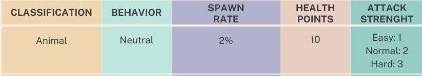Each type has its unique characteristics, behaviors, level of hostility, and spawn rate.